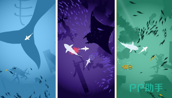 以水墨风格重构深海生态,配合动态光影渲染与物理引擎模拟水流阻力,构建出富有东方哲思的沉浸式水下空间。玩家扮演鲨鱼角色,通过持续进食鱼群推动进化进程,每阶段进化均可解锁专属技能,如范围震慑、高速冲刺或短暂隐身。操作支持触控滑动与设备重力感应双模切换,进一步提升代入感与操作自由度。