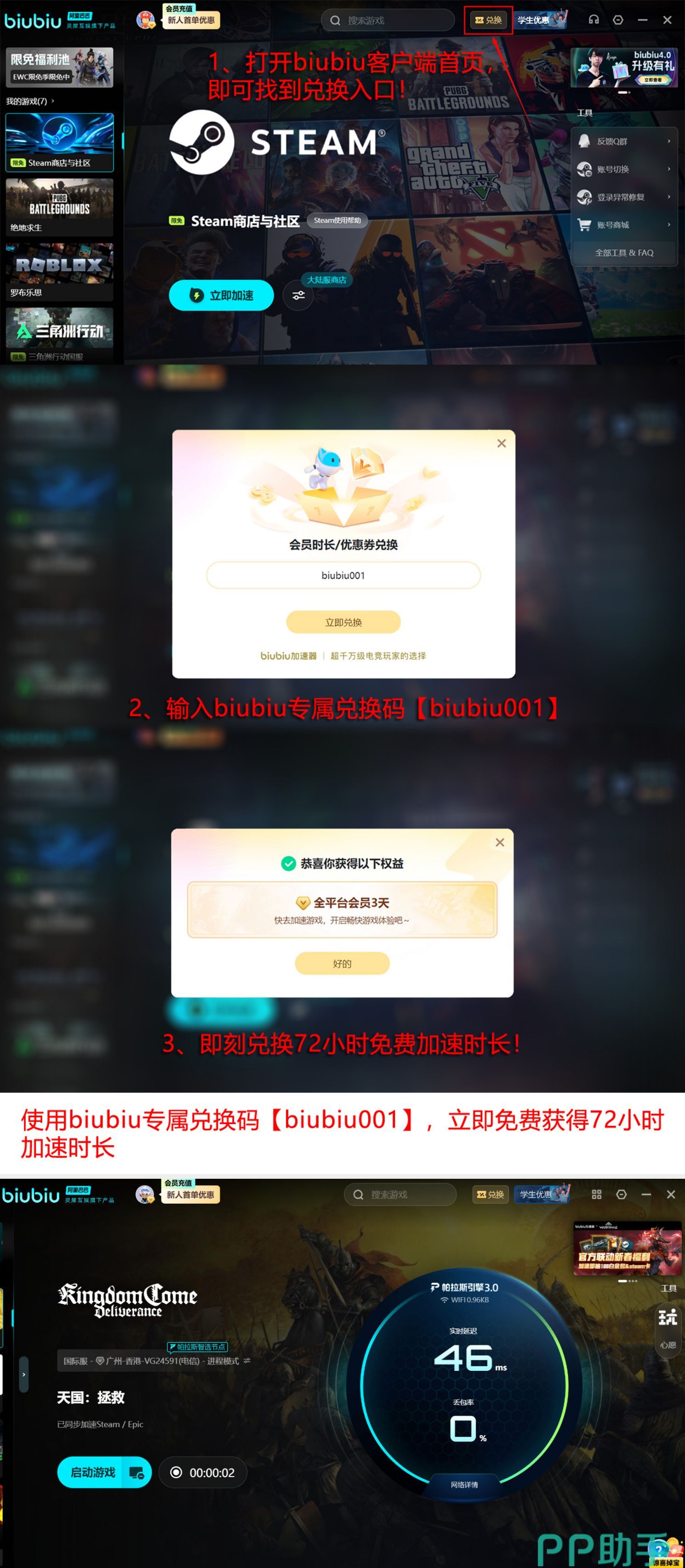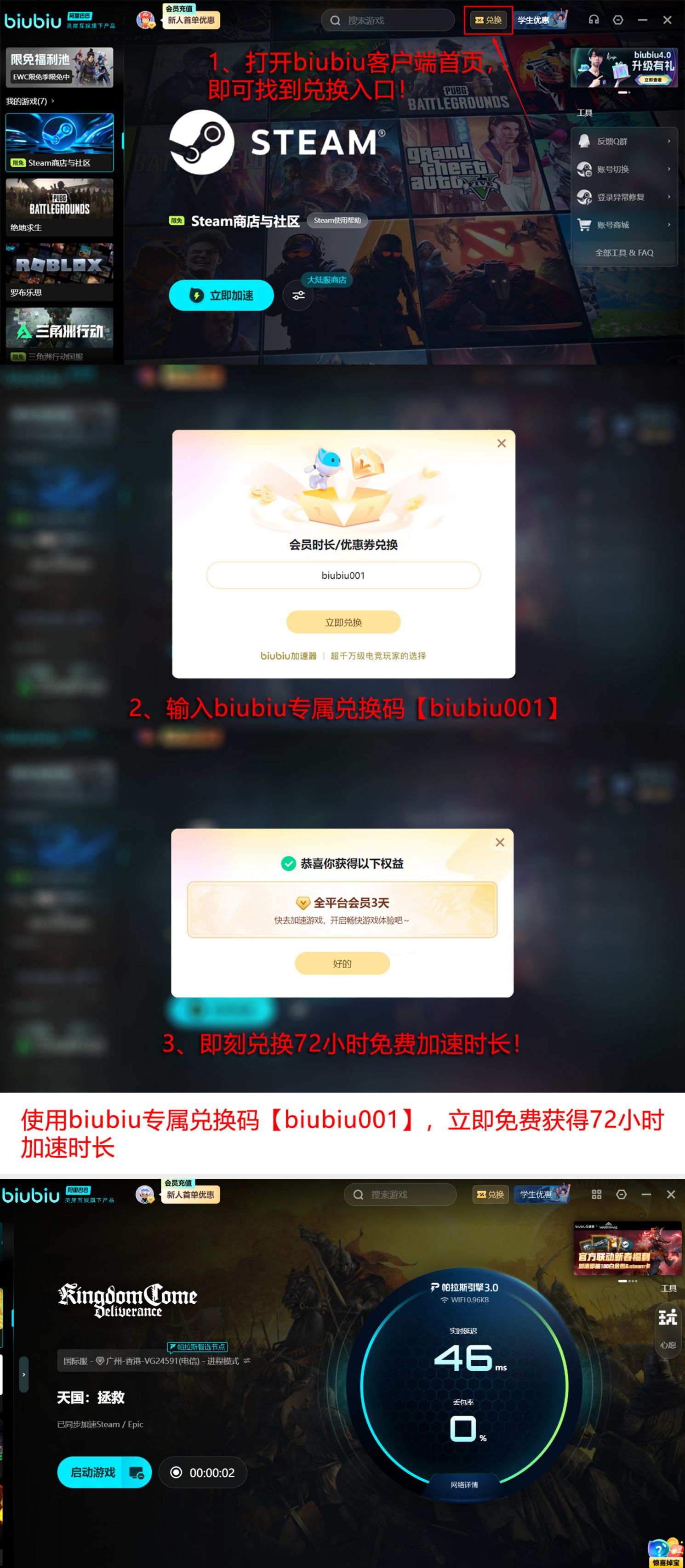 目前所推送的福利超级丰厚,使用口令【biubiu001】新老用户全部都能获得72小时免费加速时长,并不需要担心有限制,全平台各类游戏全部都能够免费加速,如果你属于刚注册的新用户,那么官方会直接赠送24小时免费加速时长,意味着新用户可获得96小时免费加速时长,长达4天的时间,可任意体验每款游戏。