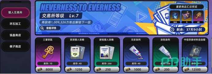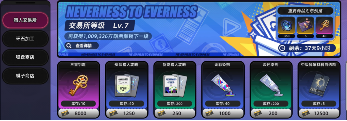 第二条是猎人交易所兑换,用方斯这个基础货币来换,额度上限比较高,理论上每期的钥匙额度都能拿满。方斯平时做日常任务、清体力都会掉,积累起来速度还行。对于不想充钱又想稳定拿钥匙的玩家来说,这条路是最靠谱的一个,没什么争议。