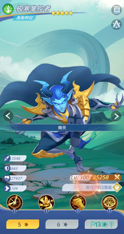 首先为大家推荐的核心角色就是极寒掌控者,也叫做泰斯特拉,泰斯特拉作为一个预售类型的精灵角色,目前放在前排的话,他是可以直接带来一定的输出以及冰冻影响的,对敌人后排进行输出的时候,可以找到随机一人造成298%的伤害数值,并且还有60%的概率给这个敌人一定的冰冻效果,后期他的伤害提升之后,攻击敌方后排,他的伤害也可以提升到417%的百分比,此时在冰冻概率上面也会提100%的能力,所以在后期他基本上是完全可以对敌人每一个回合都释放冰冻效果的,在冰冻效果当中,敌人回合是无法进行行动的,那么在后面的治愈效果当中,他也是可以给自身带来一定恢复的,所以泰斯特拉放在这里作为核心的冰冻角色来说,可以在场内带来冰冻的频次更高,而且自身也不会快速被击破,那么他在每次受到伤害的时候,还有30%的概率可以对攻击者附加一层的伤害降低,有这个伤害降低的话,那么敌人不仅会受到他冰冻的影响,后期在伤害效果上面也会得到一定的减速影响。