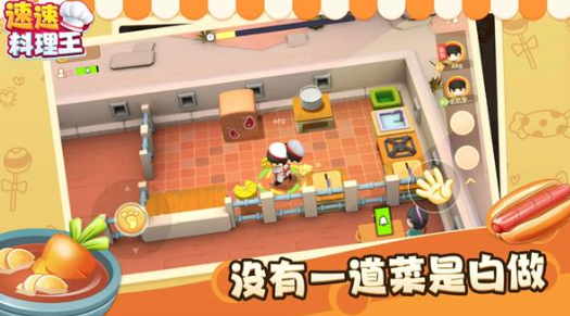 在这里客人下单之后,大家需要在接单区和烹饪区来回切换,按照要求去备餐和烹饪,时间安排的非常关键,大家需要做到忙而不乱,赚的钱可以去升级厨具,换更实用的设备,也可以去解锁更多的新鲜食材。内容非常的丰富,游戏里的角色对话也十分有趣,而且画面的颜色很明亮,背景的音乐也非常的轻快,整个氛围都非常的舒服,没有任何压力。