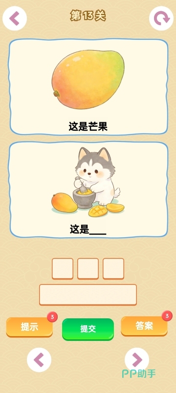每一个关卡之中都会出现不同信息的图片,从中去激发自己的思考,来找寻到其中的谐音关系,这便是最为基础的玩法内容,《谐音梗游戏》这款手游里面还会有着简单的点击操作的方式,没有复杂的设定即可让玩家们轻松的尝试,多个场景均可以让玩家们进行挑战,还可以更好的活跃自身的思维哦。
