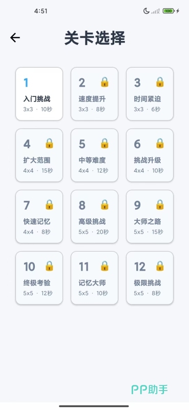 考验和训练自身的记忆力类型的益智游戏,《记忆大挑战》这款后裔之中的多种主题的卡牌图案还是很丰富的,整个画面都显现出来极为清新可爱的效果,轻松愉快的背景音乐便能从这里发现,特定的音效反馈也能让玩家们更好的代入进去,多变的持续性挑战玩起来还是很有乐趣的,值得大伙去尝试的哦。