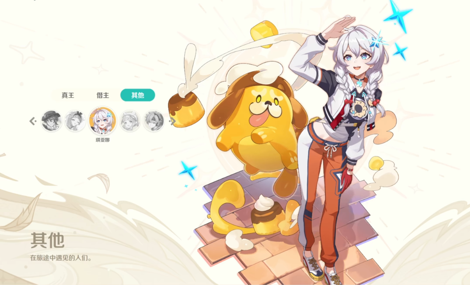 在《崩坏:因缘精灵》,琪亚娜是我们前期就能获得的强力角色之一,同时也是我们玩家作为主角带入的角色,在游戏中,琪亚娜是一名远途的旅者,来到《崩坏:因缘精灵》的世界中展开一系列事件的调查,在前期角色与精灵等级都不高的前提下,琪亚娜可以说是贯穿了我们整个游戏的开荒期。其慷慨的护甲与魔抗数值,以及攻击力加成和强力的精灵召唤机制,都让我们能在前期就能站住脚跟,让我们更加平滑的过渡到中后期的战斗之中。