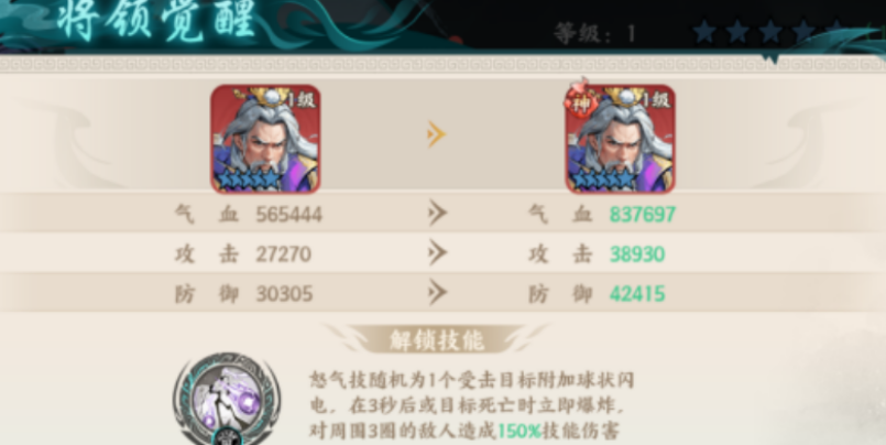 条件都齐了就可以进行第一次觉醒,消耗十颗觉醒石,完成之后武将头像右上角会出现一个白色的神字标识,这个就是第一阶段觉醒的标志,觉醒之后武将的能力会有比较明显的变化,技能效果和怒气数值这些都会跟着提升,不同武将觉醒后的变化幅度不太一样,主要看这个武将本身的技能方向。第一次做完还有二次觉醒,同样要再消耗十颗觉醒石,完成之后头像上的神字会从白色变成青色,颜色变化代表觉醒层级的不同,看武将头像上标识的颜色,大概就能判断出他目前处于哪个阶段。