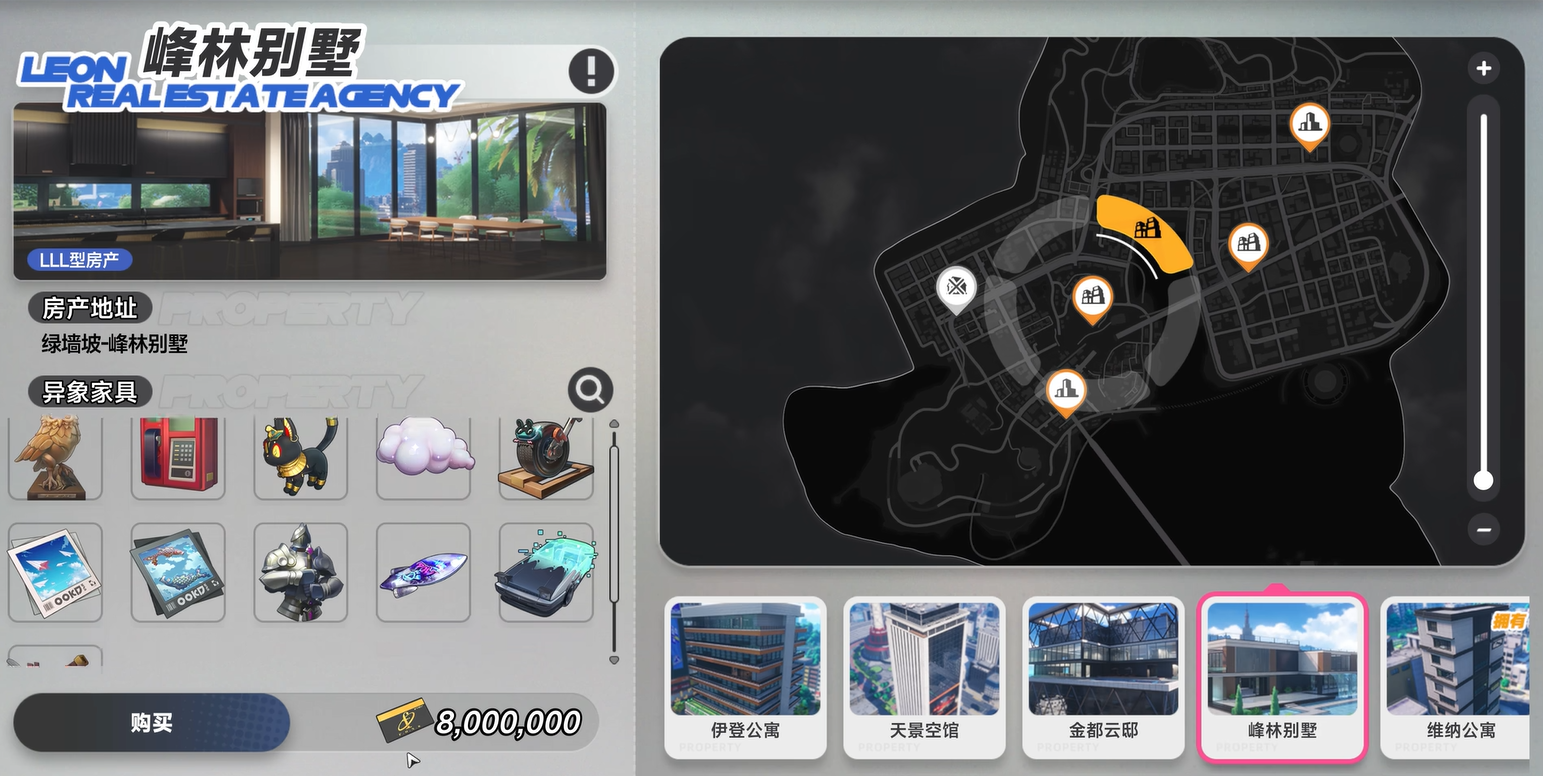 钱到位了,就可以回到房产商那里完成交易,再找之前的NPC对话,选择购买之前看好的那套房子,NPC会重新核对一遍房屋信息和价格,没有问题的话支付方斯,购房就完成了,房子正式归到名下,完成购买之后,房子里会出现一个叫Mr.尤加利的私人管家,他会帮忙管理房屋,后续有什么需要都可以找他。