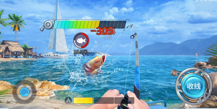 渔竿垂影逐清欢,踏浪寻钓赴新程,玩法是抛竿收线遛鱼,还能升级渔具,搭配适合的鱼饵,它的亮点是有1v1钓鱼对战模式,玩家可以和其他人比拼谁先钓到3条鱼,赢了能拿奖励,既锻炼反应能力,也能体验竞技的乐趣,游戏画面简洁舒适,不用费太多精力,还能解锁加勒比海、大连海域等新地图,一边钓鱼一边旅行,既能舒缓压力,也能了解不同地域的钓场特色。