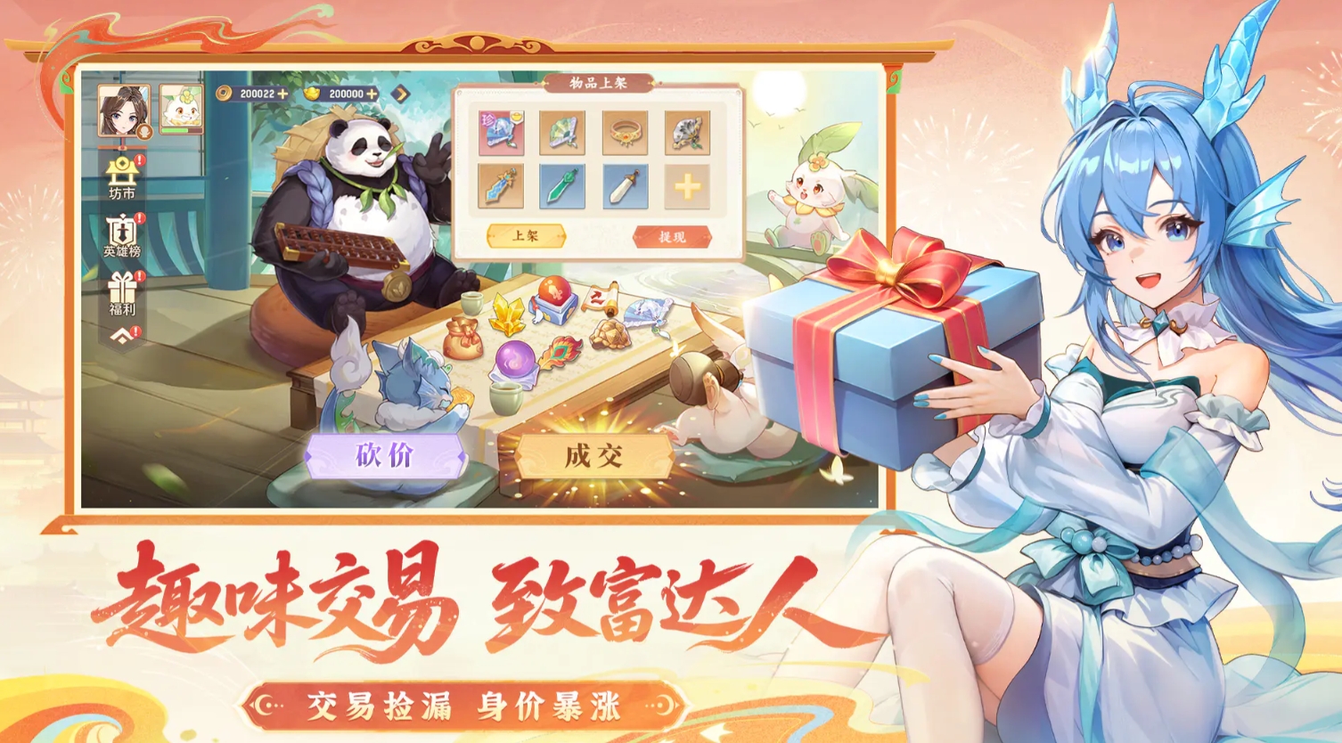 《长安幻想》能让玩家直接在游戏内捕捉宠物并进行培养,并且所需的养成都很好获得,养成所需要的成本也不高,人人都能将宠物培养至顶级,带着它们在人与妖共存的玄幻古装世界游历长安,成为名气响当当的御灵师。同时,游戏还设计了功能十分完善的交易系统,可让玩家在自己的摊位里上架冒险所获得的战利品,亦或是制作出来的各种道具和装备,零氪也能赚到海量游戏币。