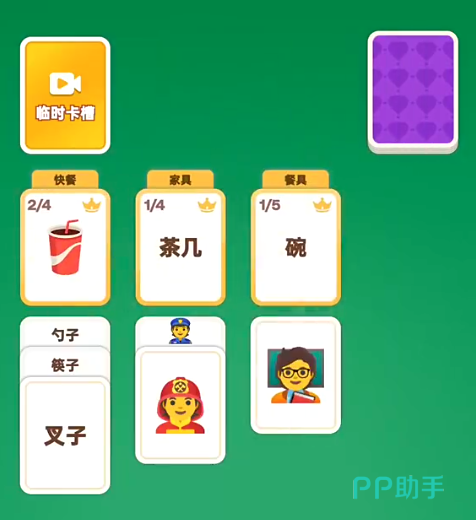 核心玩法围绕关键词归类展开:界面顶部显示分类指令,下方纸牌阵列中部分卡面处于遮蔽状态,需通过滑动操作逐步揭示并完成匹配。该设计在保持操作直觉性的同时,适度引入探索变量,使每一轮推进都具备新鲜感与可控挑战性。