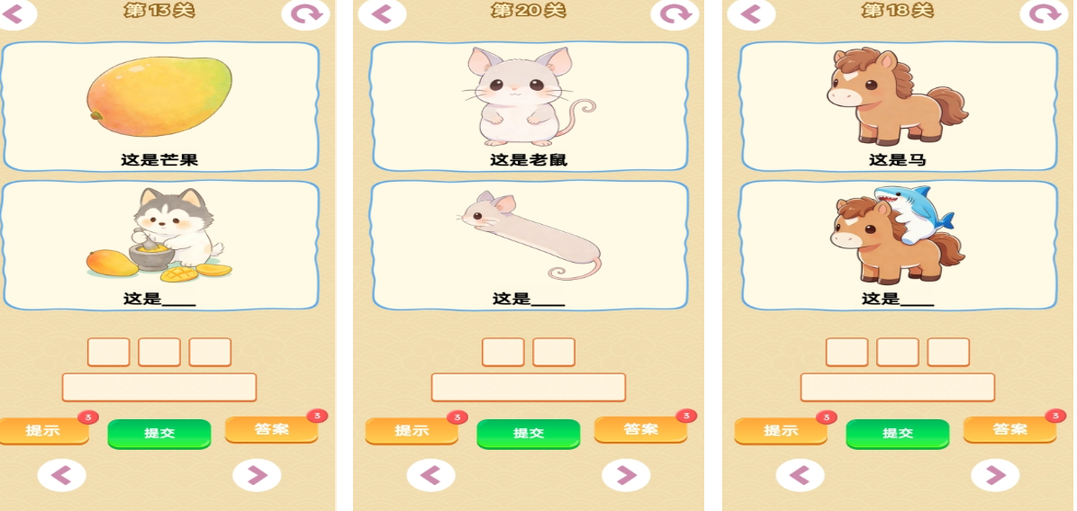 《谐音梗游戏》以语言学趣味为切入点,涵盖方言谐音、网络热词变形、成语拆解、双关联想等多元题型。每关设置开放性答案路径,强调思维发散与文化常识调用,避免单一标准答案带来的挫败感。社交属性弱化竞争压力,强化协作解谜乐趣,成为中老年玩家激活语言记忆、增进代际沟通的轻量互动工具。