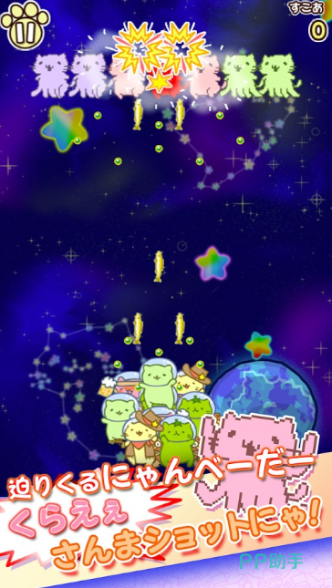 玩家将指挥一支装备精良的萌系猫咪战队,对抗入侵地球的外星飞碟。子弹造型采用小鱼元素,视觉风格清新活泼;核心玩法融合快节奏射击与策略走位,兼顾猫咪爱好者与休闲射击玩家的双重偏好,单局时长适中,反馈及时,上手即有正向体验。