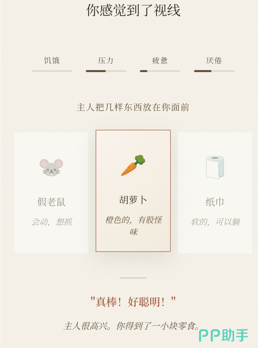《萝卜真棒》是一款以剧情驱动为核心、强调玩家选择权的单机向休闲手游。游戏通过“喂养大开门”这一独特玩法,结合道具组合与数值变化,触发不同路径走向,最终解锁十余种结局——每一条故事线都具备独立逻辑与情感张力,兼具随机性与可重玩价值。全程零付费压力,操作门槛低,特别适合通勤途中、午休间隙等碎片化时段沉浸体验。