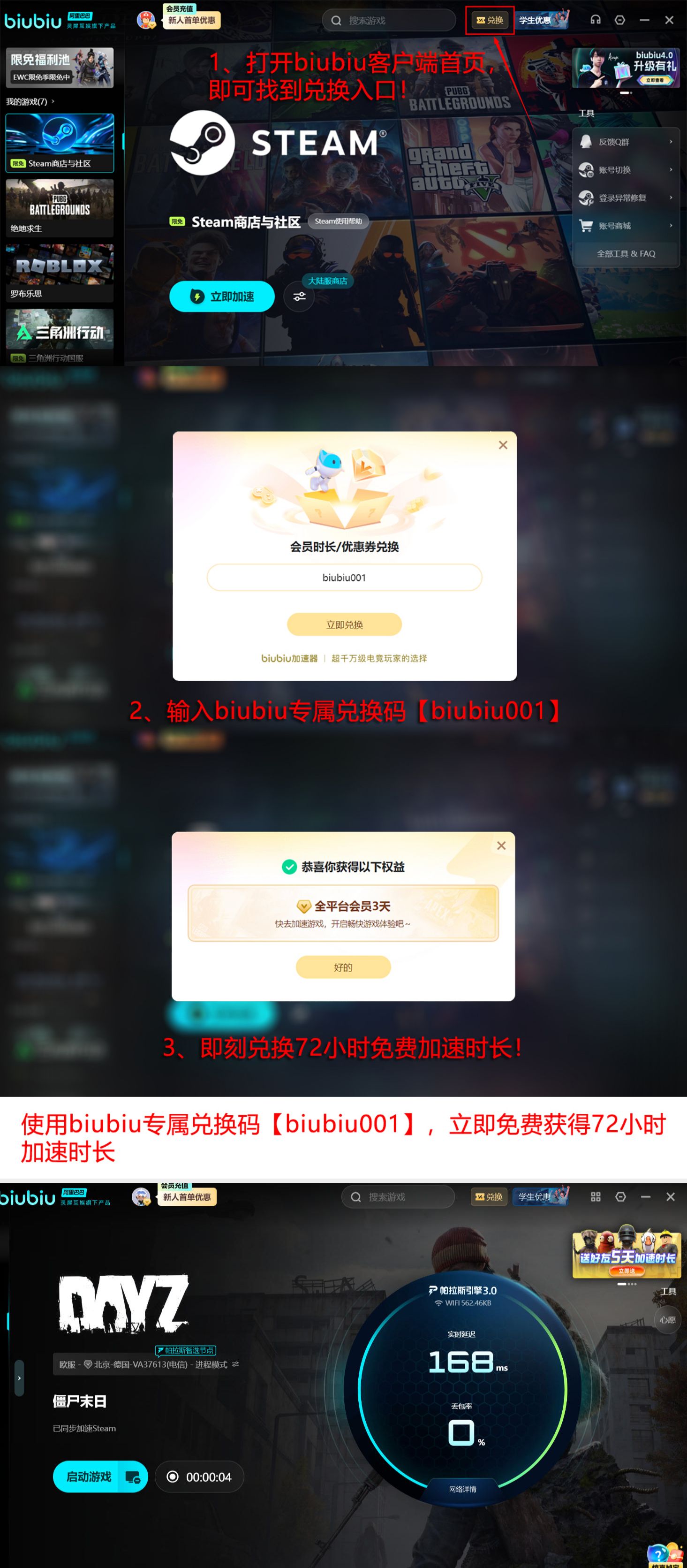 该加速器已通过PUBG全球冠军赛(PGC)官方技术认证,并作为指定网络优化工具部署于职业赛事训练环境。新用户注册后可立即领取【biubiu001】兑换码,激活三天全功能加速权限;首次注册账户额外赠送24小时免门槛试用时长,合计享96小时零费用稳定连接服务。