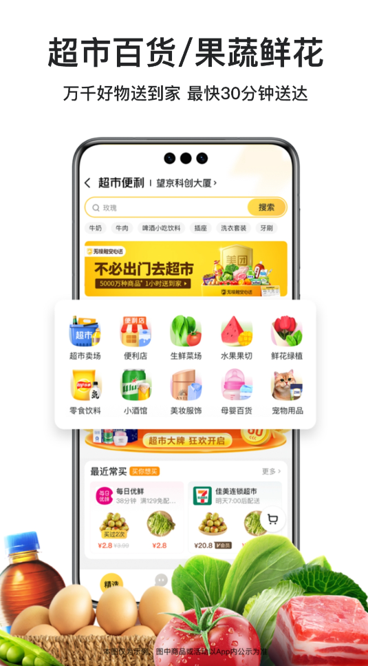 零售外卖配送的“龙头”企业,有着庞大的骑手配送人力资源,且入驻商家数量居多,不管你是想要买生鲜还是日用品,上万种的品类想要什么搜索什么即可,现在为了更加便捷区域化,还将不同的频道进行了分类划别,就像购买蔬菜和超市用品就会被分为两种。