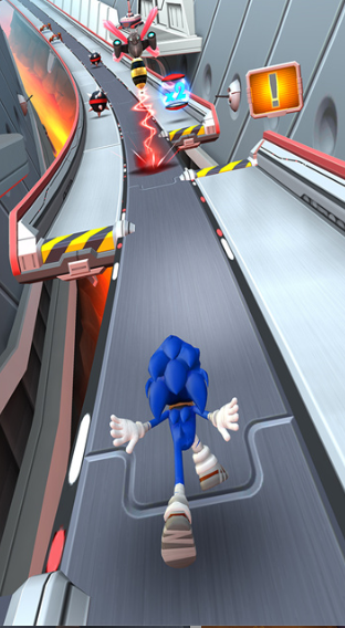 采用横向三轨跑酷结构,左右滑动切换移动轨道以规避障碍。碰撞将扣除血量,累计失误达上限即判定失败。除主角索尼克外,还设有多个可解锁角色,每位具备差异化移速、加速响应与受击反馈,满足不同操作偏好。整体操作门槛低,动作衔接流畅,适合碎片化体验与快速上手。