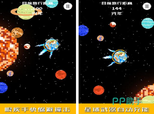 游戏的星球环境当中,不仅涵盖了地球,而且还有其他的星球,操作方式比较简单,却有着一定的挑战性,你需要在浩瀚无边的宇宙环境当中,不断的抵御迎面飞来的各种星球环境,通过避免地球发生撞击的方式,才可以生存下去。玩家在登录以后,可以与其他的玩家进行较量,看一看谁得到的分数更高,带着地球走得最远。