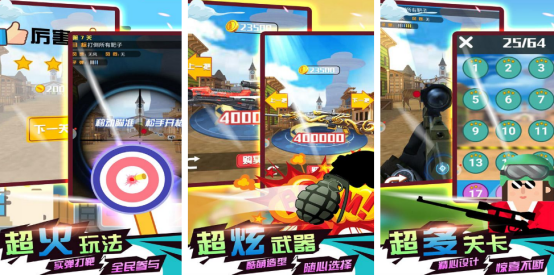 每个枪支都有着独一无二的设计,玩家要利用枪支的反作用,让枪支飞得更高,这样才能够获得更高的积分。此游戏除了有第1人称射击之外,又有当前比较流行的创新玩法,有机会成为真正的枪神。丰富多样的特色目标,再加上各种任务,比如解救人质,飞盘射击等,增加策略性和可玩性,长时间探索也不会过于厌烦,而这些目标和任务也会实时更新。