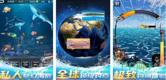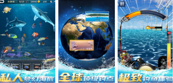 高清3d建模,还原14个相当著名的钓鱼场景,可来到夏威夷或者湄公河,设计出真实的钓鱼操作机制,通过点击屏幕控制鱼竿力度的方式来获得钓大鱼的几率。有超过60种不同鱼类,可自由建立属于自己的水族馆,收集超过200种水下生物。玩家需经营自己的钓鱼场地,钓到的鱼儿可用于升级设备或者兑换金币。