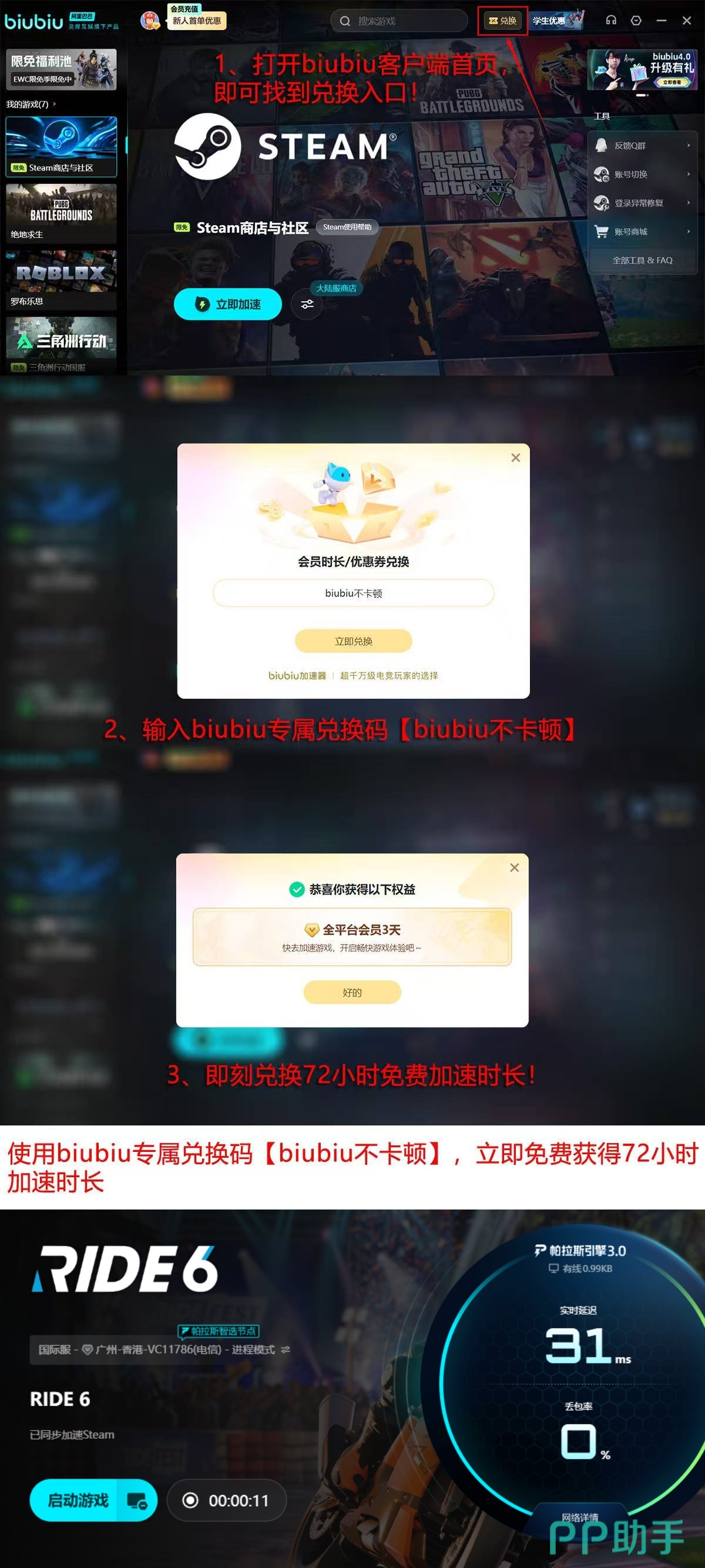 该方案已通过高强度实战验证。PUBG职业冠军选手左梓轩参与多轮压力测试,并将其纳入日常训练环境,证实其在复杂网络场景下的可靠性与一致性。目前新用户注册即可获赠24小时全功能试用权限;所有用户凭兑换码“biubiu不卡顿”还可额外领取72小时加速服务时长。