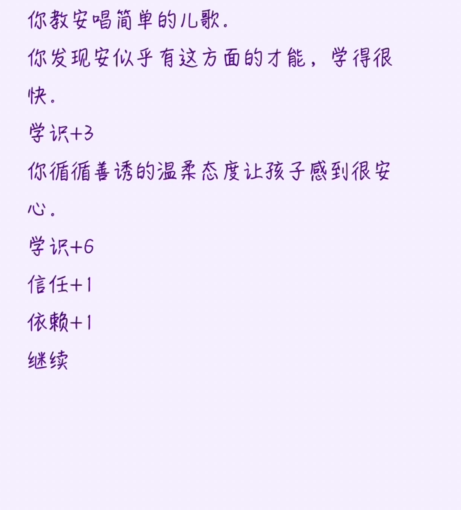 游戏核心玩法围绕“养育系统”展开:通过安排学习、陪伴、对话、节日活动等日常行为提升亲密度;每位孩子拥有独立成长轨迹与隐藏事件链,触发条件受选择、好感度、时间周期等多重变量影响。由此衍生出风格各异的故事章节——既有抚慰心灵的温暖日常,也有直击人性的深刻抉择。