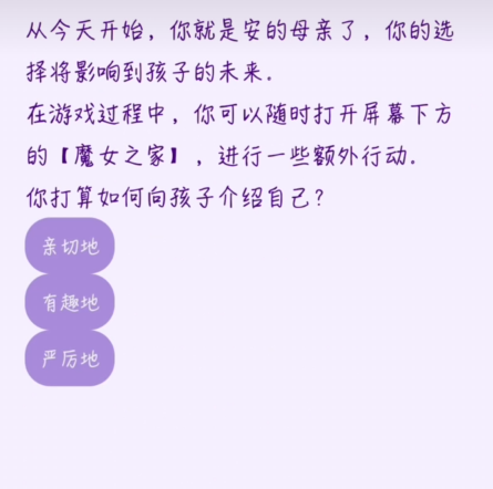 本作采用纯文字驱动机制,无动态特效与高模渲染,所有视觉想象均由精准语句激发。玩家将扮演一位永生不朽的魔女,在时间长河中保持容颜与记忆,却难逃漫长岁月带来的精神孤寂。为填补这份空缺,你将开启收养旅程,与不同背景的孩子建立羁绊,在日常互动中培育信任与依恋。