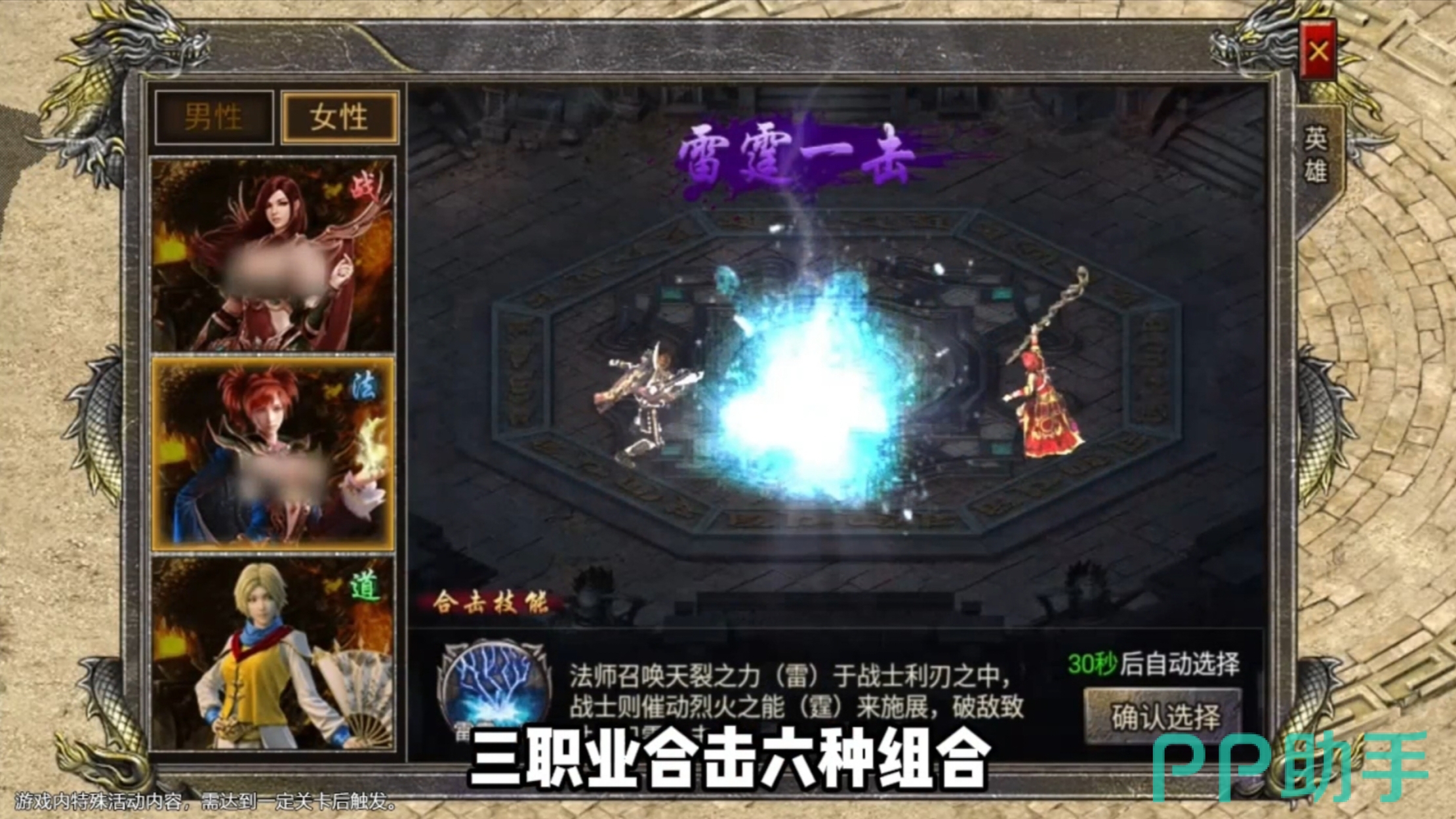 游戏上手简单易懂,战、道、法三种职业的选择既经典又挑战性满满。每个职业的特性和发展方向全然不同,只有进行合理的技能培养和装备搭配才能实现战力的最大化。这既需要一定的运气,也需要不断地努力。同时,游戏里可以养成共历风雨的战斗伙伴,并且与他们合力打出效果各异的合击技能。比如道士玩家可以和同职业的伙伴并肩共战,使用名为“噬魂沼泽”的强力技能来对敌人附加持续时间超长的毒属性伤害,不仅能够削弱对方的属性,还可以整体地压低对方的血量,形成战场上的牵制与封锁。而法师玩家则可以使用“火龙气焰”这一特效炫酷的技能,和伙伴一起造成高额的大范围灼烧伤害,轻松统率整个战场。