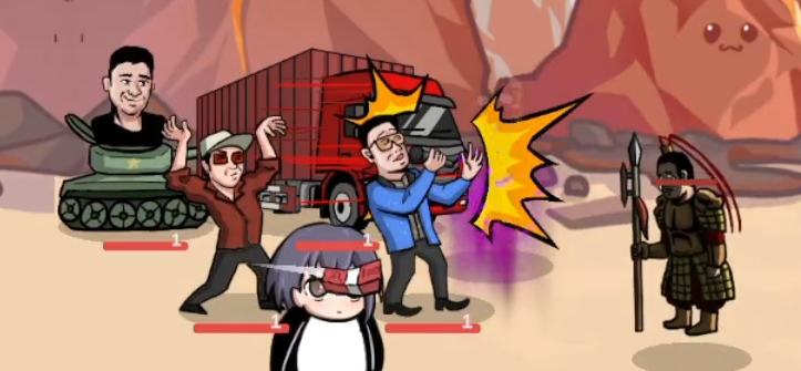 本作采用简约明快的横版塔防框架,操作逻辑清晰直观。核心机制围绕“语音召唤+文字拼写”展开:玩家需准确输入指定部队名称(即网络热梗名称),方可成功部署对应角色单位。例如输入“退退退”“尊嘟假嘟”等真实存在的热门梗词,即可触发相应角色登场参战。