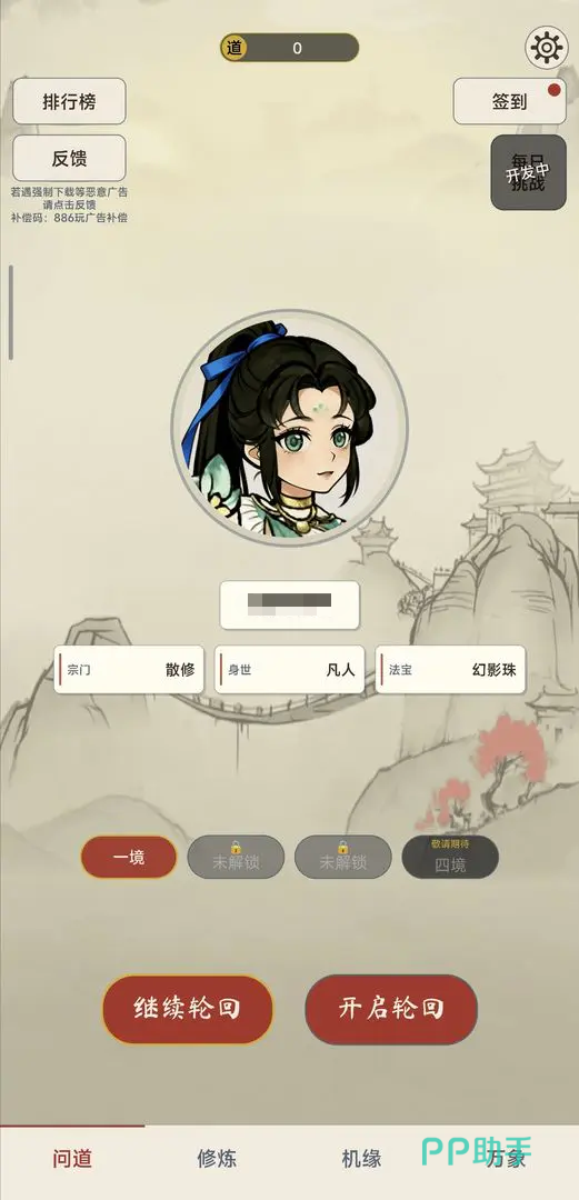 美术风格融合传统水墨意境与现代轻度Roguelike机制,画面舒朗雅致,UI留白考究。玩家初入修真界,可自主决定出身——凡人、灵族或异域遗脉;可择宗而入,亦可独行散修;初始法宝由玩家自选搭配,显著降低开荒压力,提升早期生存容错率。