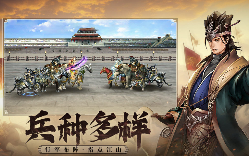 聚焦国家间长期对抗维度,构建跨服联盟战争生态。玩家可自主选择魏、蜀、吴、群雄四大势力,各阵营拥有专属兵种科技树与主城建筑体系。战术系统支持“阵型预设+实时微操”双模式,例如可提前设定雁行阵应对侧翼包抄,战斗中再手动触发火攻指令。地图采用六边形网格设计,山川河流构成天然战术屏障,不同海拔区域影响单位移速与视野距离,大幅提升地形策略权重。
