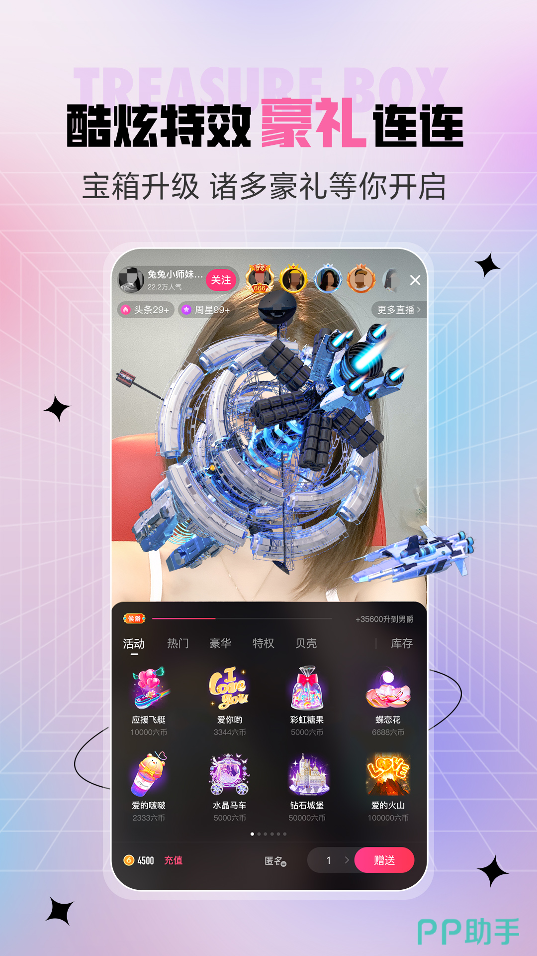 作为一个高颜值的平台,你可以在这里秀出自己的才艺,去沉浸式的感受当主播的快乐!内置了丰富的虚拟形象,不同款式的服饰任由你来搭配,同时支持3D捏脸。跨入直播间,0距离与他人进行互动,还可以语音连麦上线;全新的PK玩法提供了不同款式的专属脸萌,跟志同道合的人成为最好的朋友,更有机会得到一份珍贵的缘分。另外还有更多酷炫的道具等你来拿!
