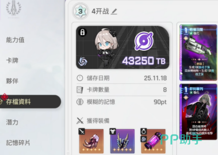 该存档系统深度嵌入肉鸽式玩法循环,日常挑战中积累的装备词条、特殊效果卡牌均可通过存档资料带入后续局内,且不受PP值约束。其中,“鲜明的记忆”作为高价值存档类型,在高难度模式下具备显著增益;进入梦境模式后,所有存档资料的基础价值同步提升,进一步放大其战略意义。