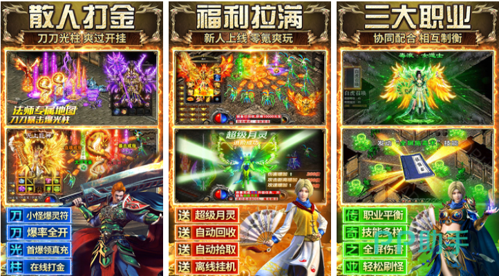 王者传奇是款拥有动作元素和RPG主题玩法的免费神作,在经典战法道职业上增加了刺客这样的输出职业,超棒的战斗特效和打击反馈也是传奇老玩家的最爱,拥有组队PK和个人竞技场这些玩法可以选择,甚至每个月都安排了固定的赛事可以随时参与,跨服战斗给大家提供了真实的PK感受,单人挑战的家园种植等精彩玩法也是本作标配,神装道具随意解锁带来的新鲜感不错。