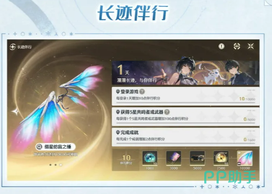 长期运营活动“长迹伴行”依托日常任务积分体系运行,当前可兑换奖励包括:10次常驻抽卡、10次限定角色券、全新印章称号,以及典藏级滑翔翼皮肤(永久免费)。后续将动态追加奖励池并提升积分上限,形成可持续参与的正向循环机制。