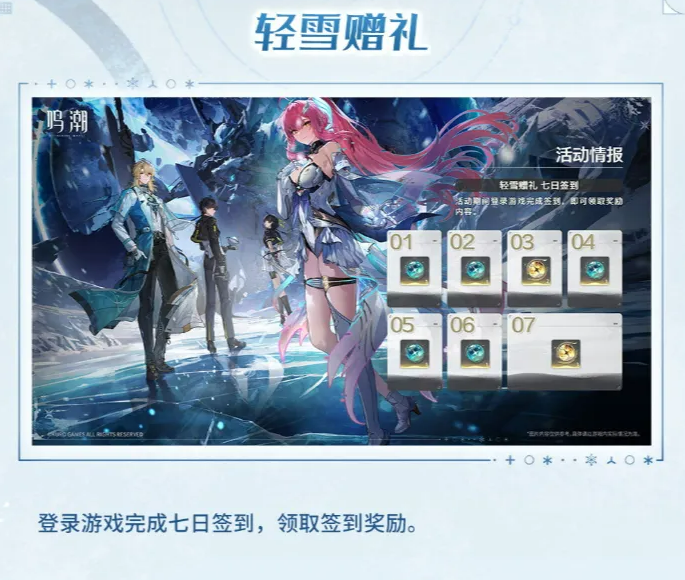 剧情任务“星炬予你”需完成主线第三章第三幕“远航星”后解锁,奖励包含漂泊者专属服饰“学院套装”及配套头像框。该外观适配男女主角通用,实现单任务双角色外观同步获取,资源转化效率显著提升。签到活动“轻雪赠礼”采用七日累计机制,满签可获得5次常驻抽卡与5次限定抽卡,合计10次抽取机会,助力角色养成过渡阶段。