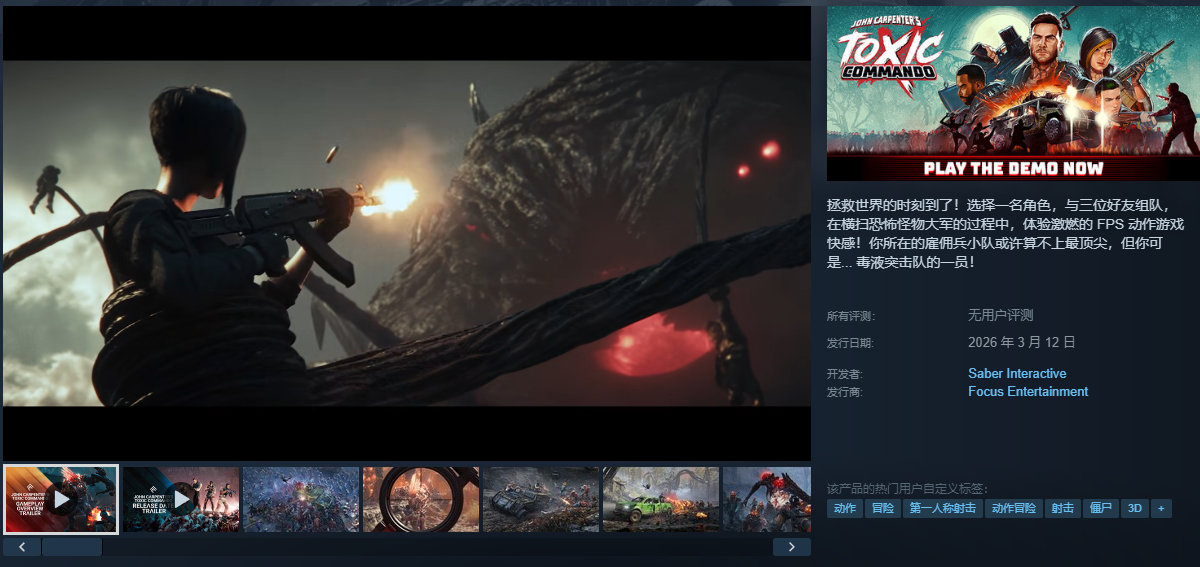 《毒液突击队》将于3月12日正式发售,Steam平台已于2月19日开放试玩Demo。这是一款主打四人联机协作的丧尸题材射击游戏,支持自由组队,每位玩家可独立选择职业——全游戏共设四种职业,支持重复选择(如四名玩家均选用同一职业),各职业需单独升级,随等级提升逐步解锁技能变种。游戏内置完整经济系统与装备成长线,核心目标为协同清除感染者。