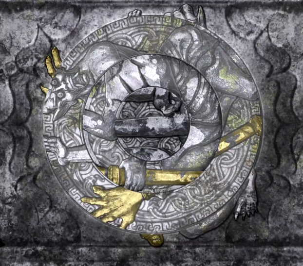 玩家第一张图解锁的是一个手托玉玺的怪物,转动三层石环将图片进行复原即可通关,而在转动石环的过程当中,小编为大家提供一个技巧,在最外层可看到零星散落元素,玩家可以由外向内逐一转动,将第一层石环与最外侧散落元素对齐后,剩下的两层石环可以逐一与第一层、第二层对齐,这个小技巧无论石环层数如何增加都是非常好用的。