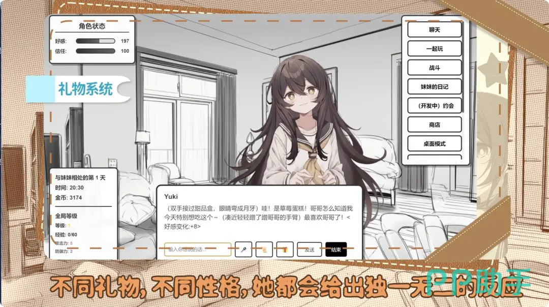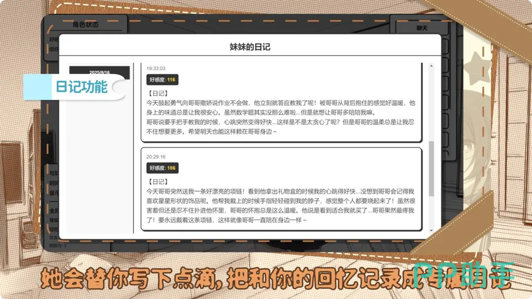 所有关键互动时刻均会自动归档为“专属日记”,支持随时回溯查看。文字、时间戳、场景截图三位一体,完整留存玩家与Yuki之间独一无二的情感轨迹,使游戏超越模拟玩法,成为可长期延续的数字陪伴载体。