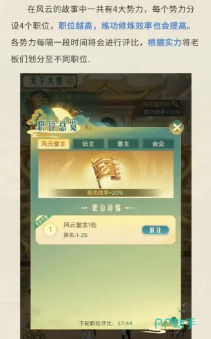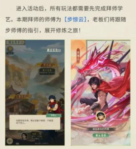 活动起始阶段需完成“拜师”仪式,正式拜入步惊云门下。此后所有修炼行为均围绕“真气积累”展开——真气值达到阈值后方可提升境界等级。系统支持全自动挂机修炼,离线状态下亦可持续产出真气,保障基础成长不断档。若追求更高效率,可消耗体力请求师傅亲自指导,该方式所获真气量显著优于挂机,且随境界提升,倍率加成效果愈发突出。此外,玩家在所属势力中担任的职位等级,将直接影响单位时间内的真气获取速率,因此积极参与势力建设与排名竞争,是提升整体修炼效率的重要策略。