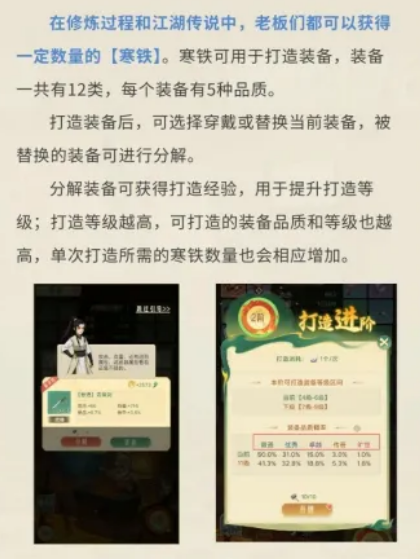 “江湖传说”为剧情驱动型玩法模块,由泥菩萨作为叙事引导者,完整还原风云主线六章内容。每章包含奇遇、抉择、战斗、委托四类动态事件,难度逐级递增。全难度通关不仅可领取专属成就奖励,更是角色突破高阶境界的必要前置条件之一。值得注意的是,该玩法过程中击败敌人或探索场景将稳定掉落寒铁资源,而寒铁是后续装备锻造的核心材料,不可替代。因此,建议将修炼进度与江湖传说推进保持同步,避免资源断层或功能解锁滞后。