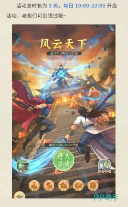 时光杂货店×风云天下限时联动正式开启!本次合作以《风云》IP核心人物步惊云为关键切入点,打造沉浸式武侠养成体验。活动周期严格限定为3天,每日开放时段为10:00至22:00,时间紧凑,建议玩家提前规划参与节奏。以下为本次联动玩法的系统性解析,助您高效达成目标。