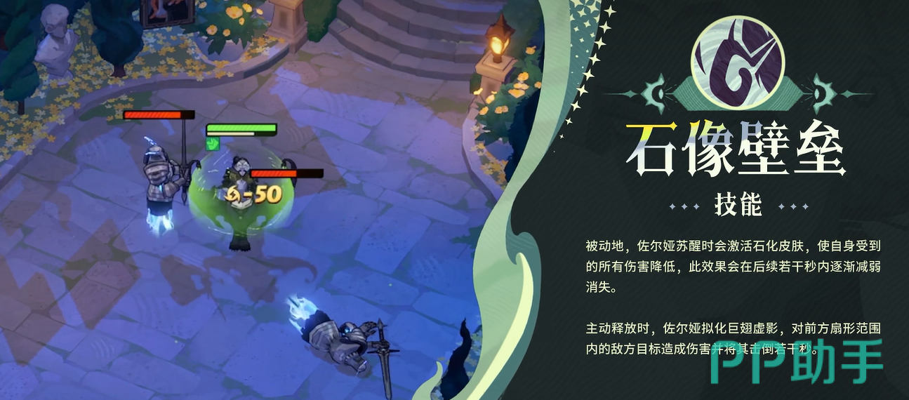 终极技能【守望之环】集成三重战术价值:施放期间获得完全无敌状态、对范围内敌人造成魔法伤害并附加晕眩控制。该技能的启动前提为佐尔娅完成“休眠—苏醒”周期——开局即进入不可选中、不可交互的休眠状态,此时我方实际处于四打五局面;待倒计时结束,她自空中强势入场,正式参与战斗。值得注意的是,休眠全程持续触发无敌效果,即使全队阵亡,她仍可凭此机制恢复至满生命值与满能量,实现单点战略重启。此外,队友对其施加的能量回复行为可直接缩短休眠时长,这一联动设计显著提升了队伍在能量调度层面的协同深度。