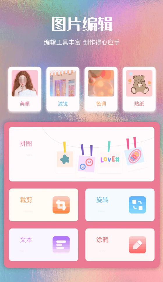 能批量对不同数量的照片设置预设拼接,只需要将想拼接的照片导入进去,系统能根据适配的风格自动拼接,中途也能调整照片的顺序和大小调整,在拼图前后均可先去操作美颜美化,如果没想到特别好的创意排版的话,也能按照系统预设去用它们的创意排版。