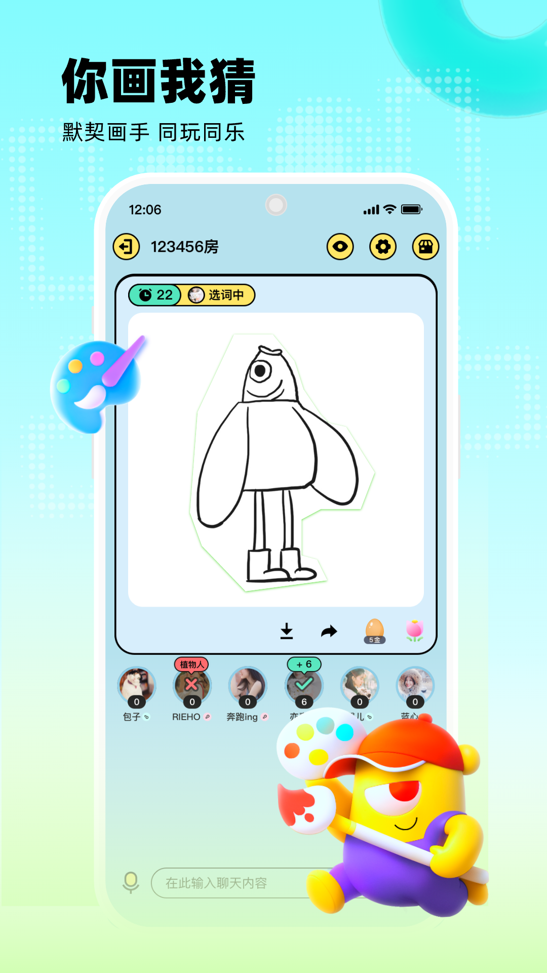 你画我猜让你体验到了画画的乐趣,并且支持下载和分享,同时可以加入到对应的派对。狼人世界给你一种独有的推理乐趣,双人同座模式感受到了共同游戏的魅力!另外整体的画面设计比较清新,新颖的内容给人带来了一种创造的快乐,你还可以用声音去比拼演技!线上组局的形式打破了时间和空间的限制,让你找到更多灵魂相同的人。