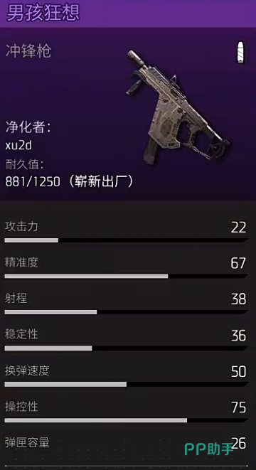 第一个的就是大家中距离作战里面经常用到的一类冲锋枪,叫做男孩狂想,这个冲锋枪当前在屋内。武器分类效果上面虽然是冲锋枪类型,但是效果上面确实是不像传统的冲锋枪那样依靠近战来爆发,而是有足够的弹道控制以后,男孩狂想的输出会更加稳定一些,而且在一些开阔的地图当中,它的设计效果以及手感会更好一些,当然了这个武器在中距离输出效果上面一般依靠的就是弹道的稳定,如果大家能够预判到敌人走位的话,依靠这个冲锋枪是可以你快速的实现火力压制,而且上手难度相对于其他的枪械来说是比较低的,不需要大家去花费更多的时间练习压枪。