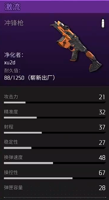 第二个大家推荐的就是激流,激流当前其实也是作为一个冲锋枪类型的武器效果来使用,但是它目前在射速以及精准度上面比上面的男孩狂想更高一些,所以在近距离效果上面它会更具有压制能力,一些目前更适合的场景是一些狭窄通道,作为新手玩家会选择的一类武器,如果是在比较近距离当中遭遇敌人的时候,他短时间真的带来的射击效果会更强势一些,当然了,建议大家在这类场景当中使用这个武器的时候,要搭配其他的闪避以及各种突进动作来进行灵活使用,才能达到想要的高输出战斗效果。