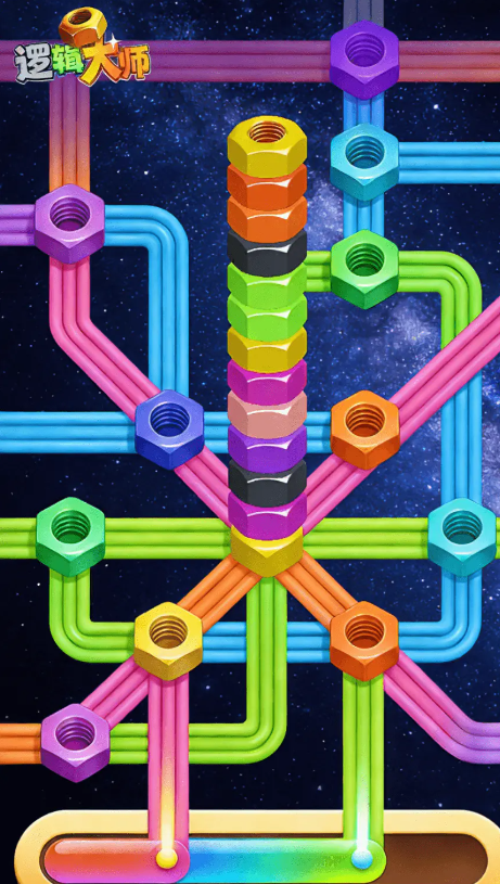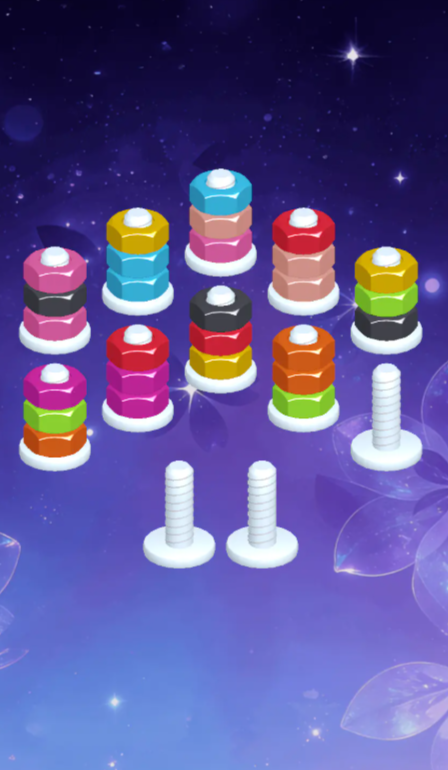 玩家可以点击上方链接,直接在本平台下载,便可畅玩此款游戏,游戏的主要玩法设计,常常要对不同的颜色进行分类操作和有规律的排列,玩家需要依据螺母串联的色种进行合理的部署,玩家需要通过不停的移动和查入以及颜色的合并等一系列的动作,把不同色种的螺母,分出多个层次合理的整治到一个空白的独个的螺丝内,每一款的螺丝所包含的螺母也各有不同,玩家需要开动脑筋,提前做出策略性的预判,把每个颜色通过有计划的操作把螺母的放入合适的位置,还要把螺母的空间进行有规划的腾出,这样才能够放入恰当的螺母,提高游戏的进度。