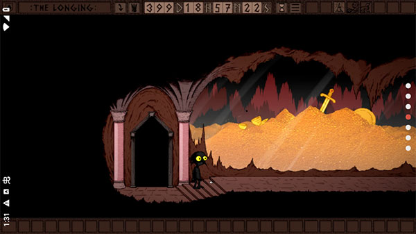 游戏中的任务设计是围绕着沉睡的地下国王苏醒展开的,所以在完成任务时引入了倒计时机制,扮演一个影子仆人的角色需要在偌大的地下宫殿中进行探索,并且在这里收集煤炭,书籍,矿石等资源作为家园建设以及扩建居所时需要用到的道具。随着时间的变化,水池将会被蓄满,等待一定的时间才能够进入到新的区域进行探索。