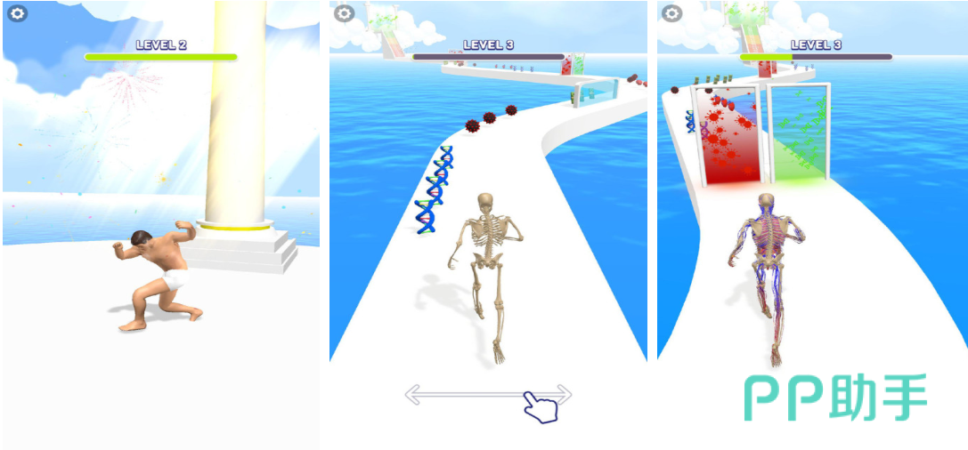 这款跑酷主题的游戏会让你了解人类的组成部分,刚开局玩家只能控制一副骨架进行跑酷,在跑酷途中可以收集血肉、DNA这些道具让自己有血有肉,游戏设定特殊也有着很快的跑酷节奏,在跑酷过程中你也将见证一个人类的诞生过程,颇具创意的跑酷玩法让无数跑酷爱好者血脉喷张。