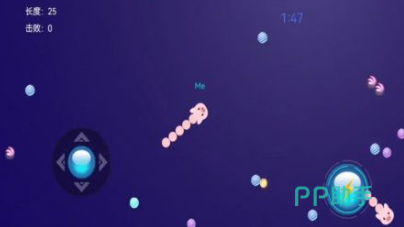 开局即呈现一条初始长度较短的蛇形单位,通过触控屏幕方向键控制其在封闭区域内行进。场景中随机分布大量高亮小球,接触后自动吸收并转化为身体延伸长度。随着体长增加,操作容错率逐步降低——一旦头部碰撞自身躯干或触及边界,游戏立即判定失败,需重新开始本局挑战。