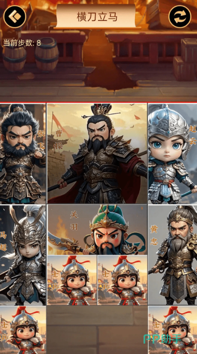 全作共300余关,每关设有明确通关指令,拒绝无目标试错。玩法深度融合三国题材,以3×4紧凑型棋盘承载经典规则,白色带“曹”字方块为唯一通关目标,须将其移至底部出口区域。操作方式为触控滑动,无时间限制与步数约束,适合各年龄段玩家循序渐进掌握策略逻辑。